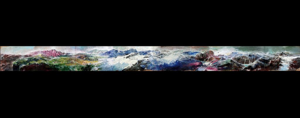 montagne con autore -2015- olio e acrilico su tela 220×370 cm