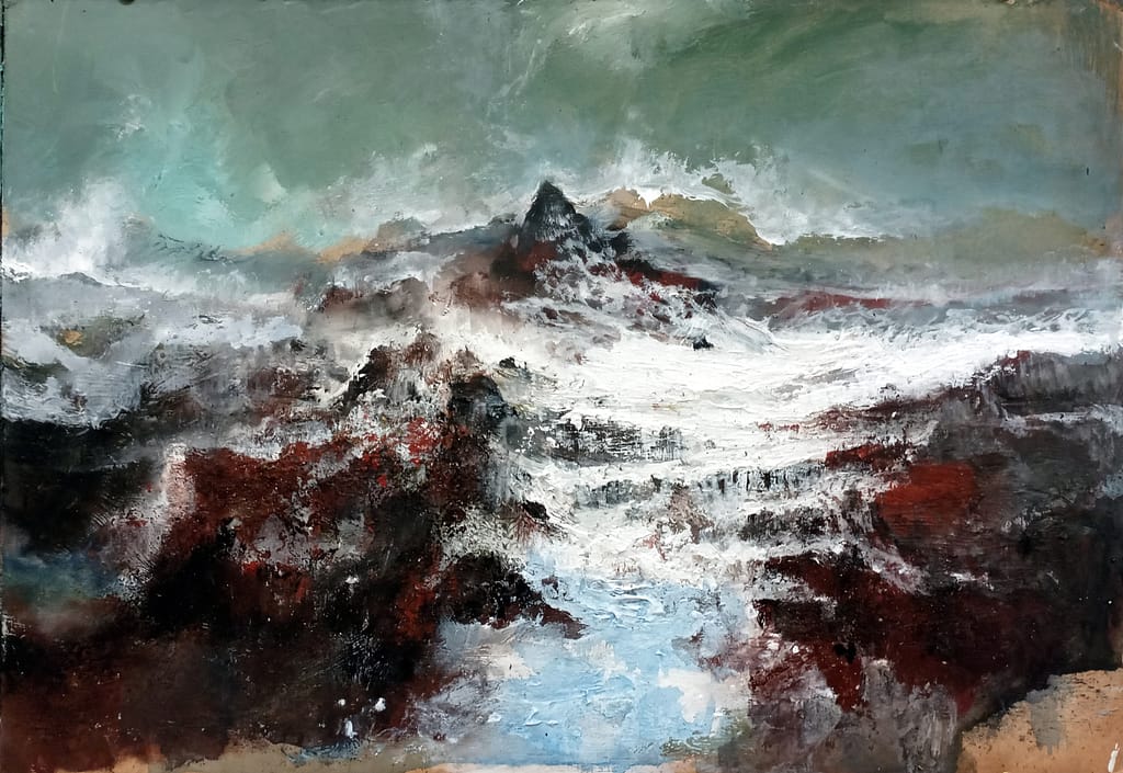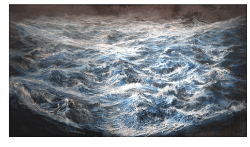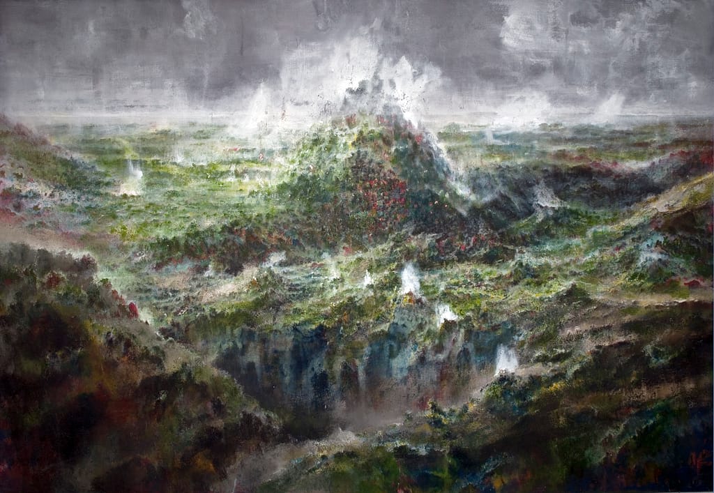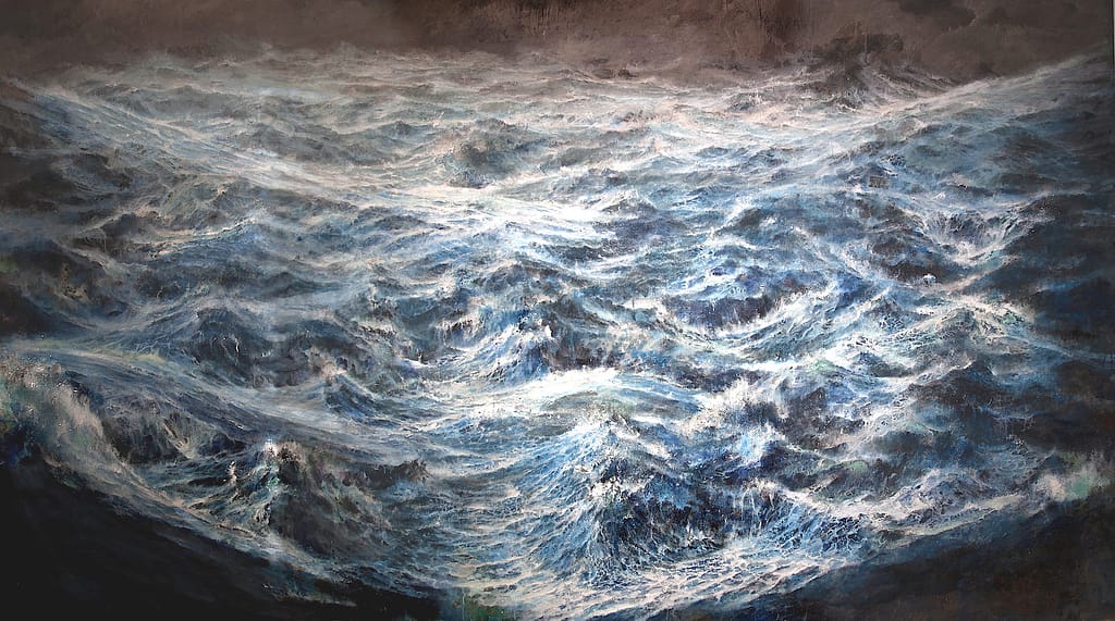 TEMPESTA SULL’OCEANO PRIMORDIALE. olio e acrilico su tela cm 210 x 360 Francesco Santosuosso – 2019