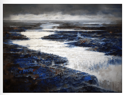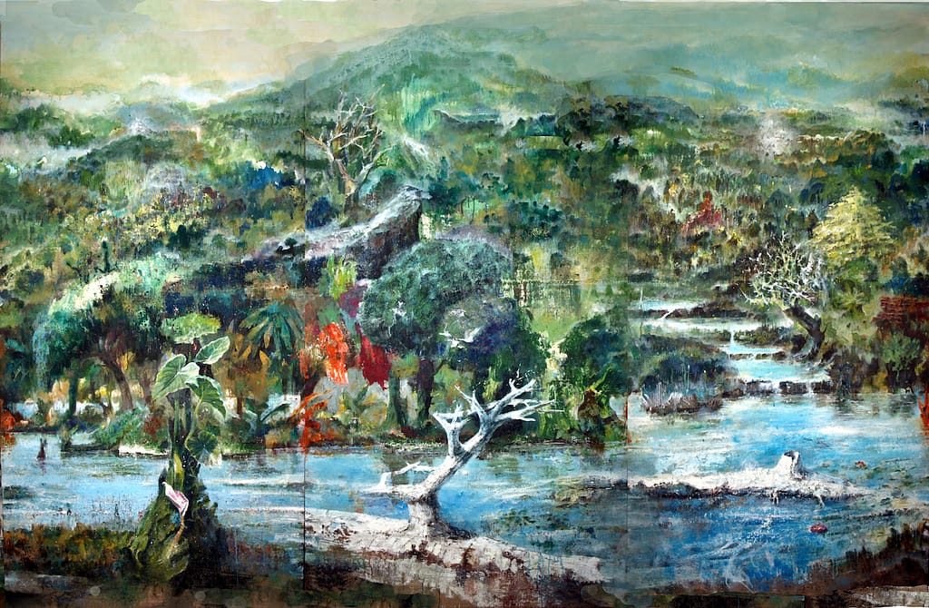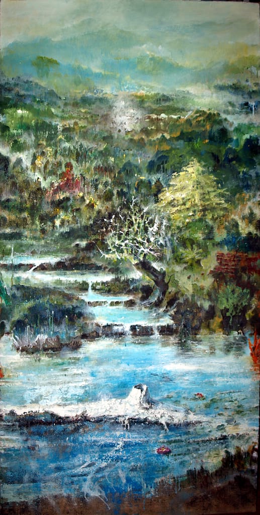 APOCALICTIC RIVER. olio e acrilico su tela, cm 150 x 200. Santosuosso 2019