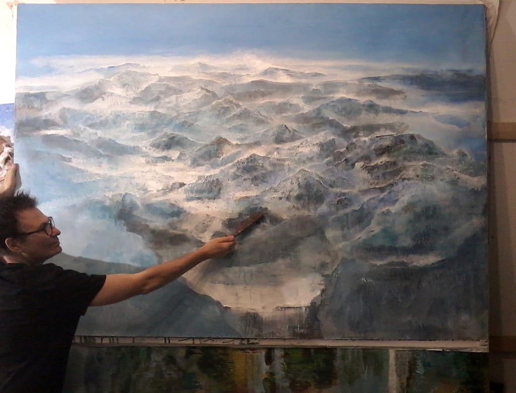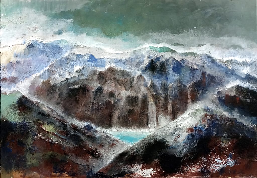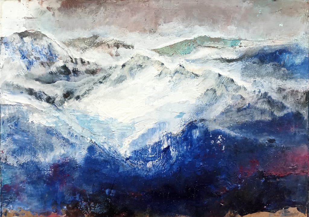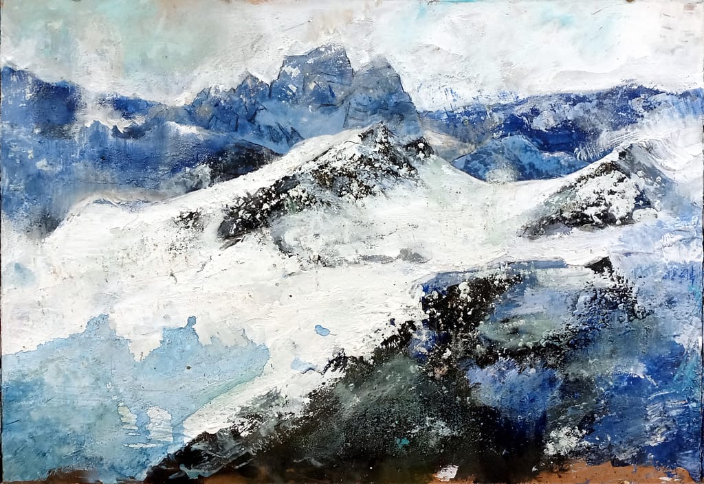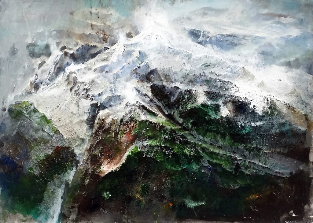 VI SONO ESPOSTI I MIEI ULTIMI GRANDI DIPINTI SUL TEMA DELLA MONTAGNA, IN TECNICA OLIO E ACRILICO