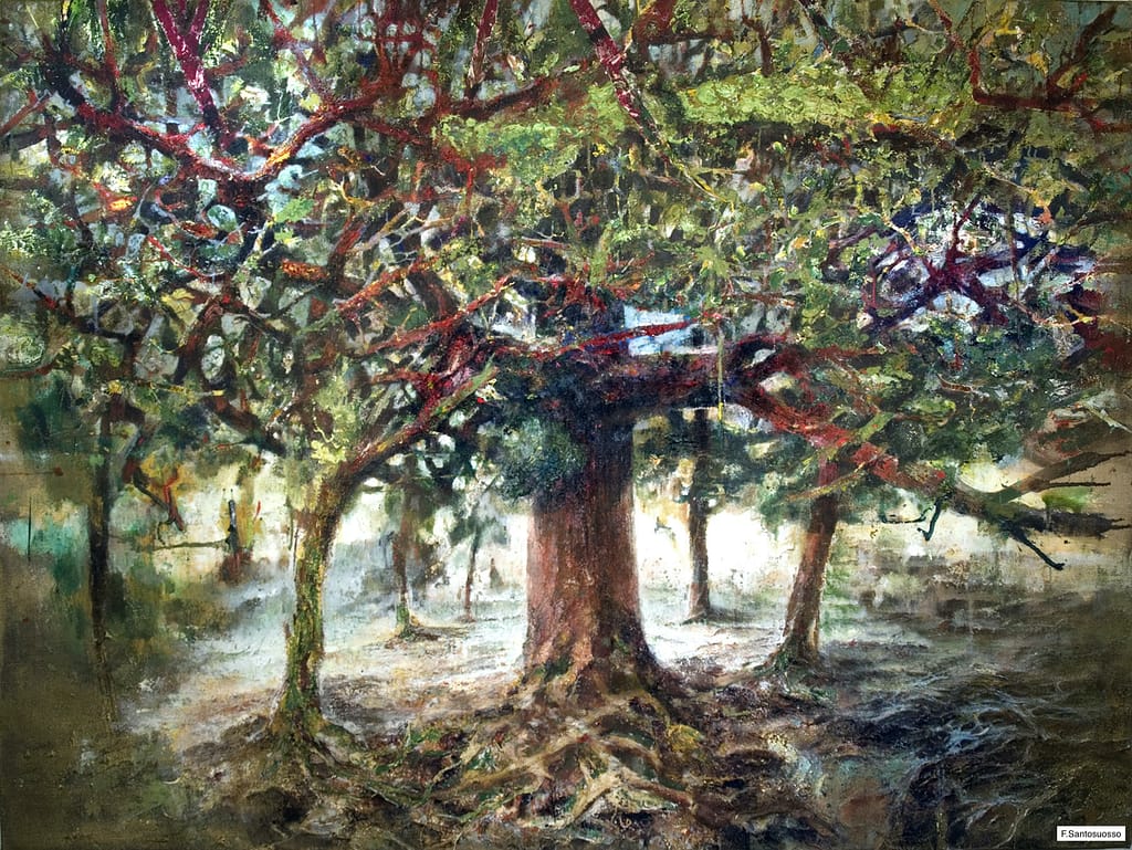 la vita giocosa degli alberi. olio e acrilici su tela. cm. 120 x 180. Fr. Santosuosso 2014