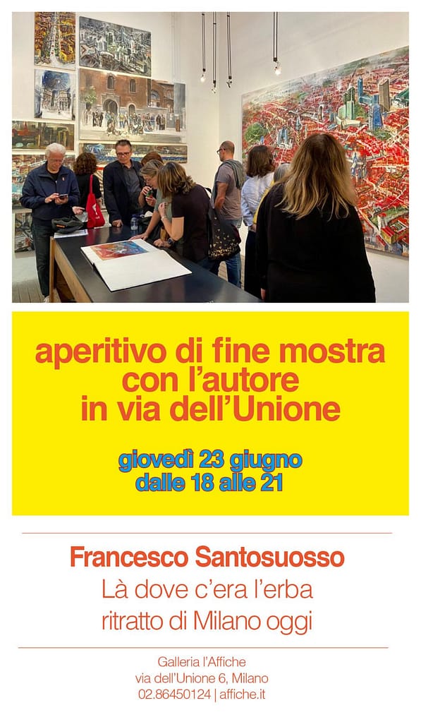 Santosuosso, pittore realista e visionario, più di altri autori in questi ultimi 25 anni, ha rappresentato Milano nella sua mutazione pre e post globalizzazione, osservandone gli aspetti sociali, politici, antropologici, sottolineando anno per anno i cambiamenti umani e urbanistici, intersecando il percorso della sua città con quello degli altri paesi del mondo.